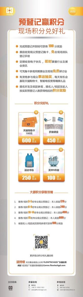 得益于广东国际水展的同期举办,广东泵阀展涵盖华南市政、工业、民用三大领域,打通了污水 处理、膜工业、给排水、成套供水等行业上下游。dab、杜科、南方、浩卓、凌霄、永力、华生、春江、凯鑫等优秀品牌均已入驻,2020年展会规模将扩增至5.5万平方米,汇聚超过 1,000家展商,预计将迎来4.5万名专业观众莅临参观,致力打造华南高品质泵管阀展览会。