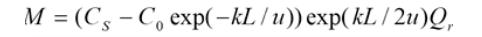 x——为排污口距下游控制断面的距离(m),如把一个功能区内多个排污口概化为河段中点的一个排污口时,x=l/2,l为河段总长;