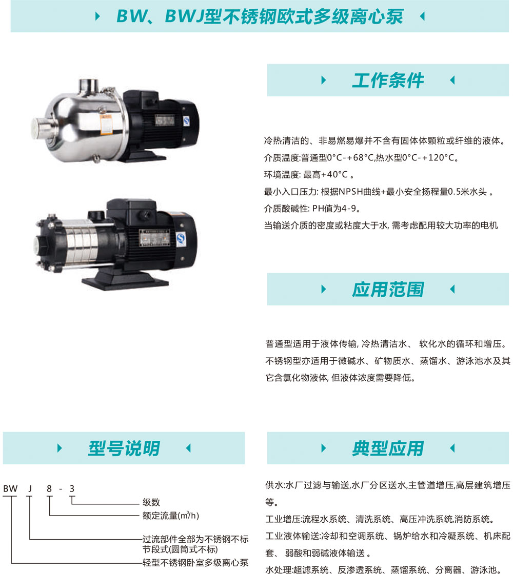 bw、bwj型不锈钢欧式多级离心泵