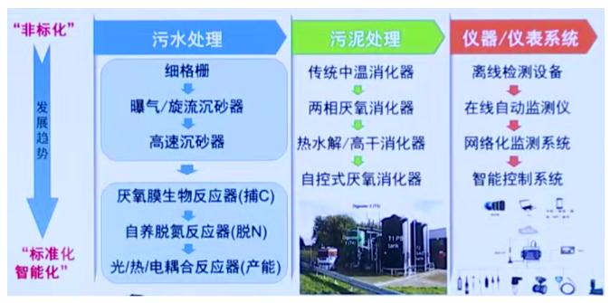 装备是实施污水处理技术工艺实现的载体。污水处理厂从最前端的格栅到后面主体工艺的各种反应器,到污泥处理设备,包括整个流程智能控制的仪器仪表,都是实现碳中和不可忽视的内容。未来装备的发展趋势必然是从“非标化”逐步迈向“标准化”、“智能化”。