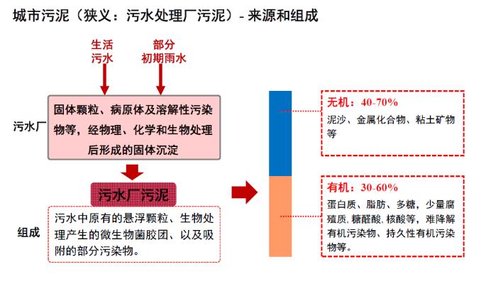 污泥来源及组成:污泥物质组成非常复杂,既含有c、n、p等资源性物质,也含有重金属、难降解有机物、持久性有机物、微塑料等污染性物质。