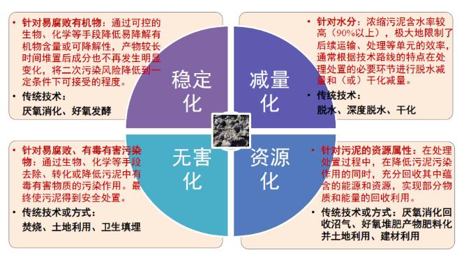 污泥处理处置原则:“安全环保、循环利用、节能降耗、因地制宜、稳妥可靠”,最终实现减量化、稳定化、无害化、资源化。