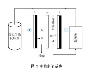 燃料电池与bmed技术的结合,为能源的发展拓展了新方向。在生物制氢方面,jing tang等提出一种集成发酵制氢和产物分离为一体的生物制氢系统,见图 3。