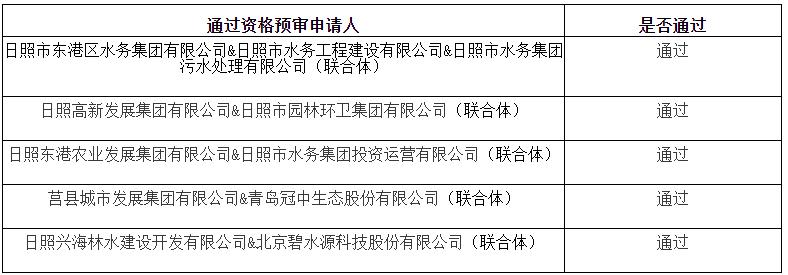 日照市全域水环境综合治理ppp项目社会资本方采购项目资格预审结果公告