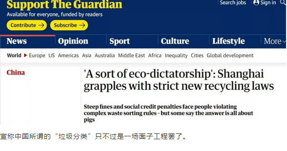 如今中国已经响应了世界的要求,进行了国史上第一次垃圾分类举措。然而,那个2年前说咱们中国垃圾太多,要求我们搞垃圾分类的英国《卫报》此时又跳了出来,这次他们却拿出了另外一副面孔,在一篇最新的报道中开始指控我们严格的垃圾分类制度是“环保独裁”。