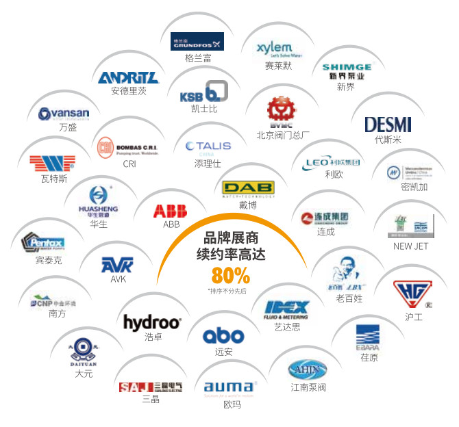 经过8年的累积与发展,越来越多的国内外品牌先后入驻上海国际泵管阀展,2019年展商续约率高达80%,上海泵阀展已成为了泵阀展览行业的翘楚者和风向标。